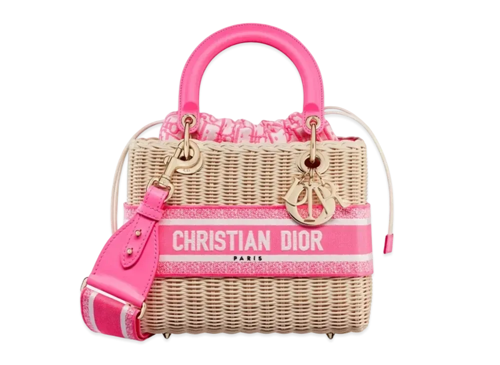 Dior Medium Lady Bag Natural Wicker Dior Oblique Jacquard "Fluorescent Pink"