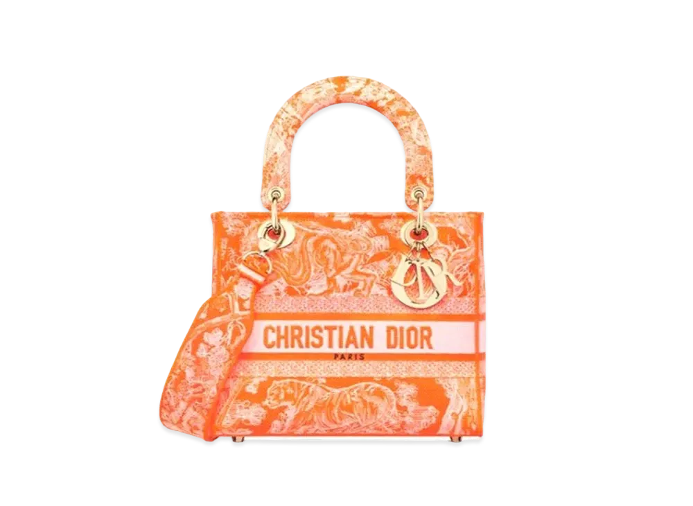 Dior Medium Lady D Lite Bag Toile De Jouy Reverse Embroidery "Fluorescent Orange"