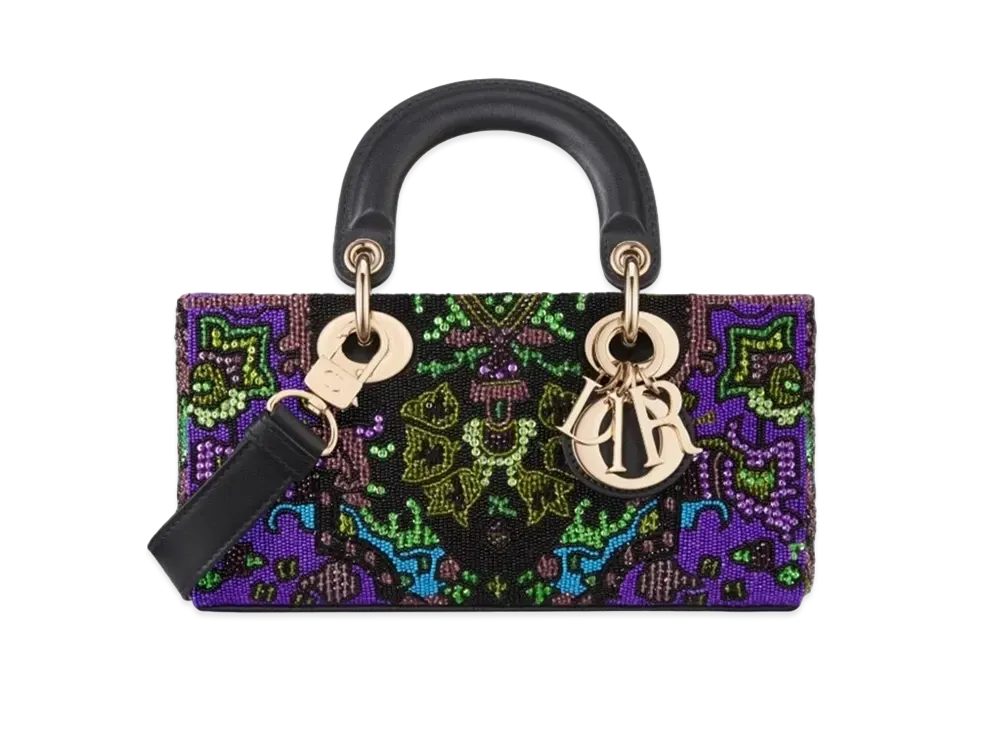 Dior Small Lady D-Joy Bag Satin Embroidered Indian Motif "Multicolor"