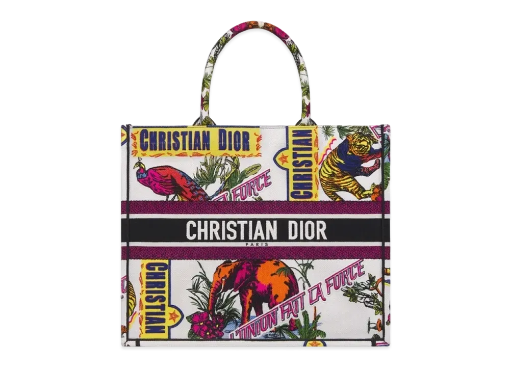 Dior Large Dior Book Tote Indian Animals Embroidery "Multicolor"