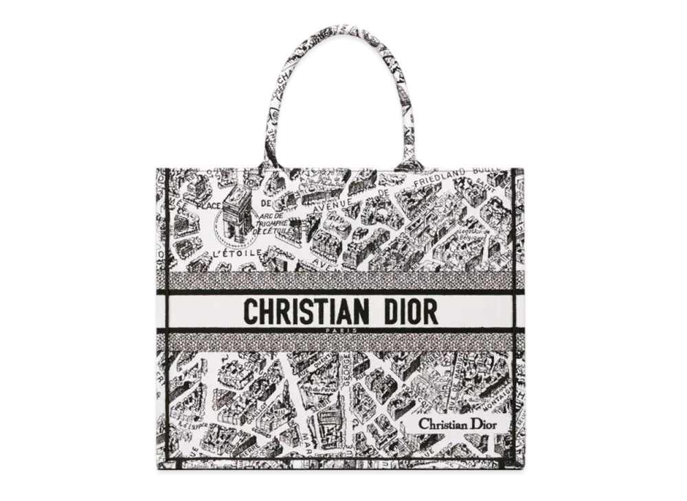 Dior Large Dior Book Tote Plan De Paris Embroidery "White/Black"