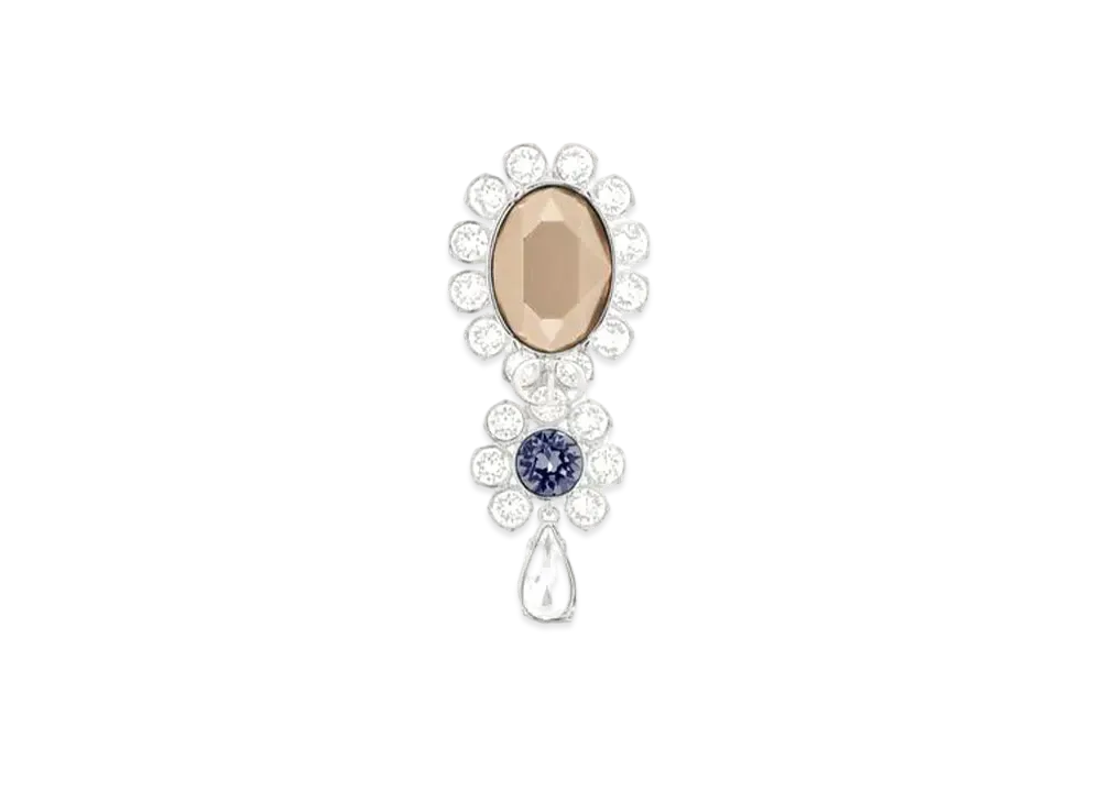 Dior Cabochon Brooch Brass with Crystals "Silver/White/Gray"