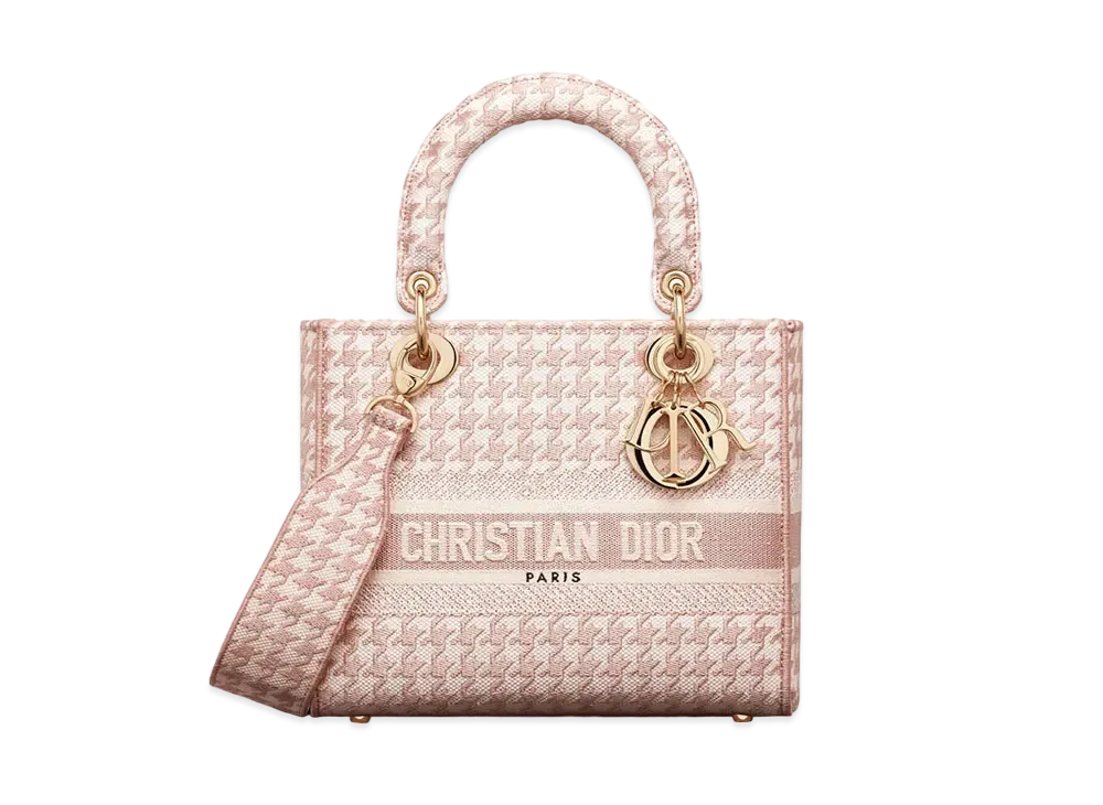 Dior Medium Lady D-Lite Bag Rose Des Vents Houndstooth Embroidery "Rose des Vents"