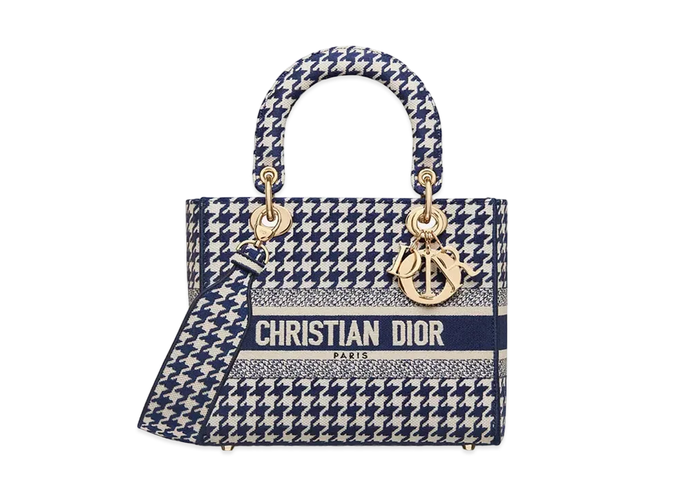 Dior Meidium Lady D-Lite Bag Blue Houndstooth Embroidery "Blue"