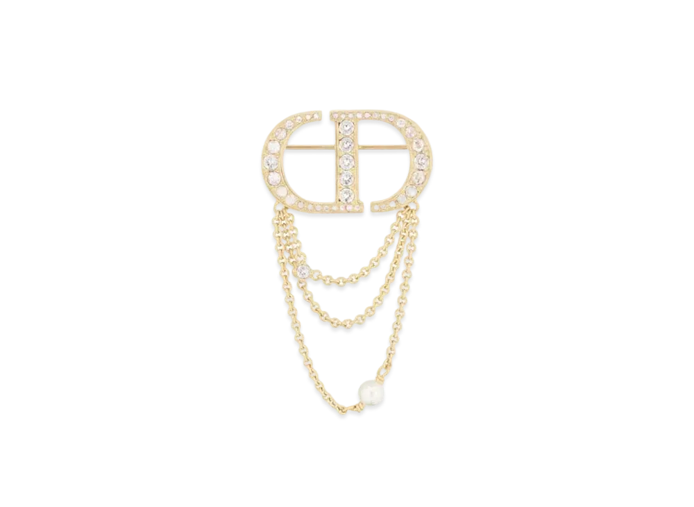 Dior Petit CD Brooch Metal with Resin Pearl and Crystals "Gold/White/Silver"