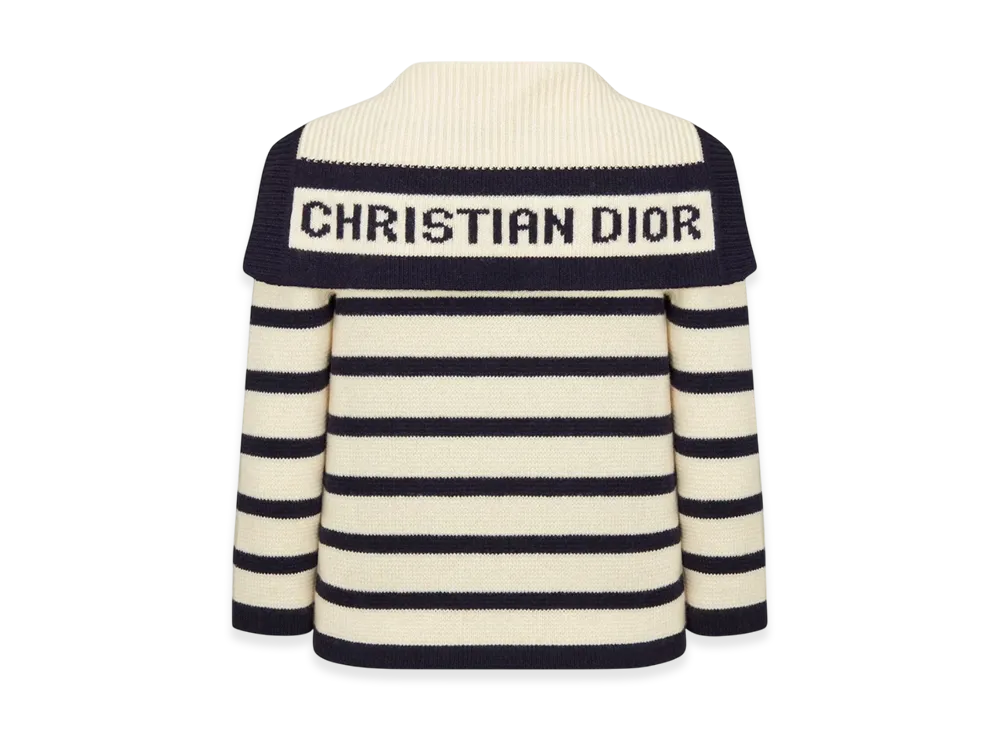 Dior Women's Mariniere Cardigan Virgin Wool Cashmere Knit "Navy Blue/Ecru"