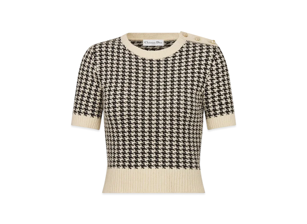 Dior Women's Short-Sleeved Sweater Houndstooth Technical Cotton Knit "Black/White"