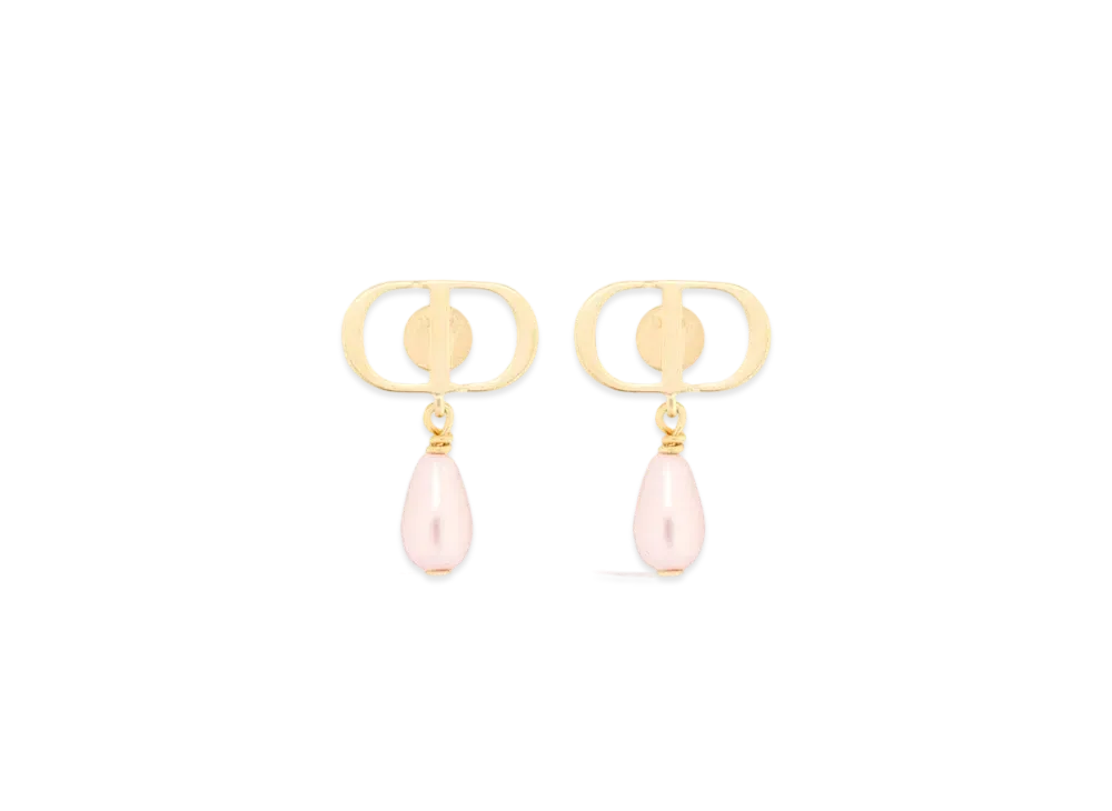 Dior Petit CD Earrings Metal and Resin Pearls "Gold/Iridescent Pink"