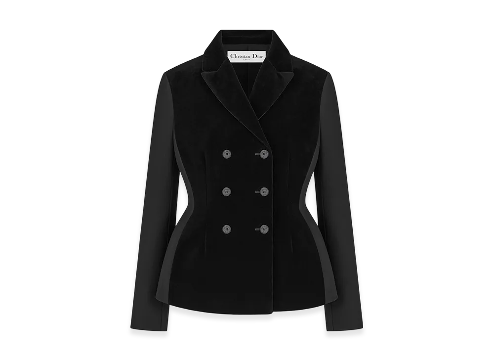 Dior Women's Fitted Jacket Velvet Effect Wool Silk "Black"