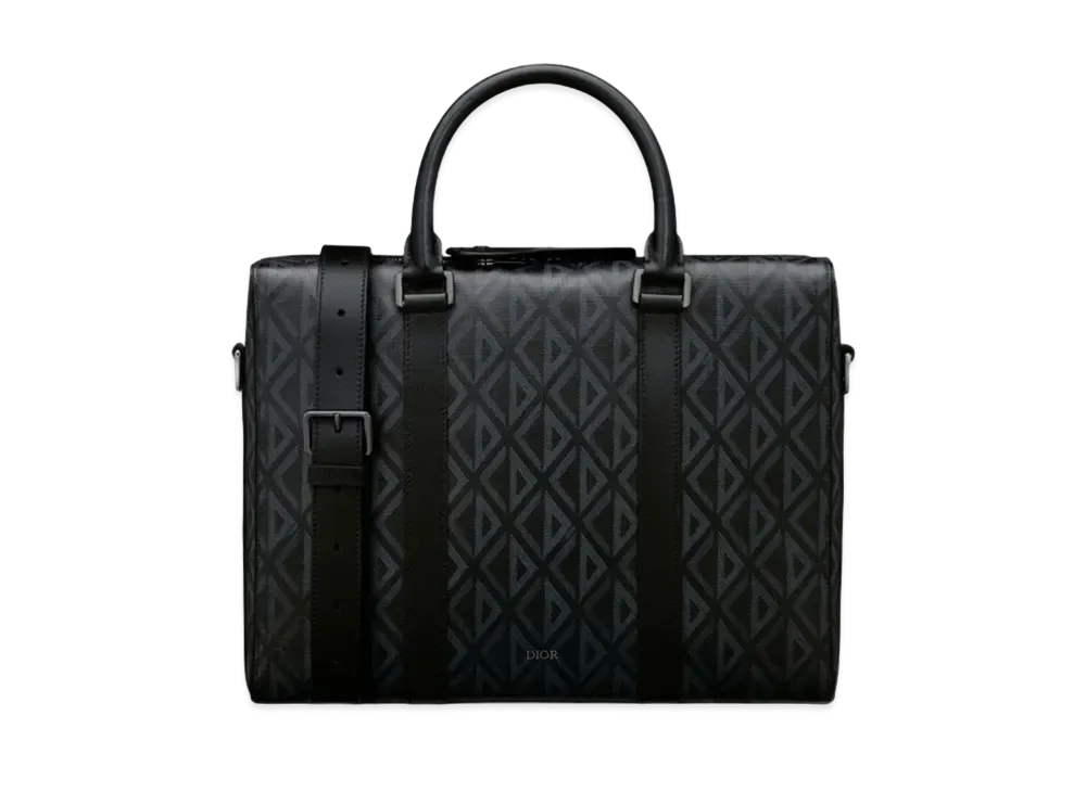 Dior Lingot Briefcase CD Diamond Canvas Smooth Calfskin "Black"