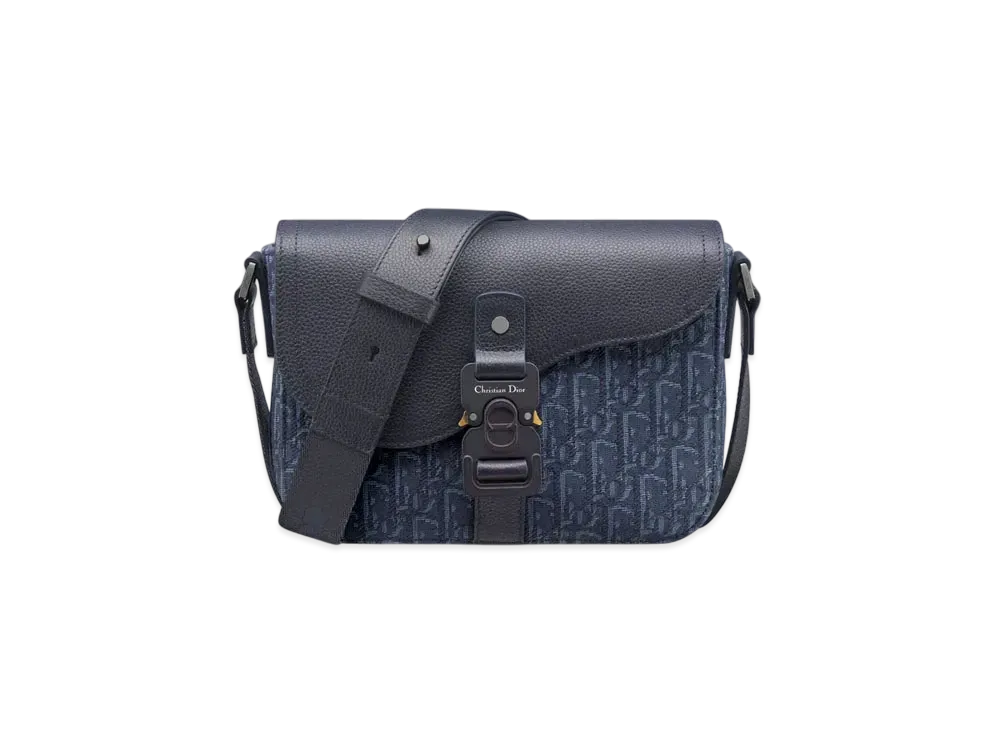 Dior Small Saddle Messenger Bag with Flap Dior Oblique Jacquard and Grained Calfskin "Navy Blue"