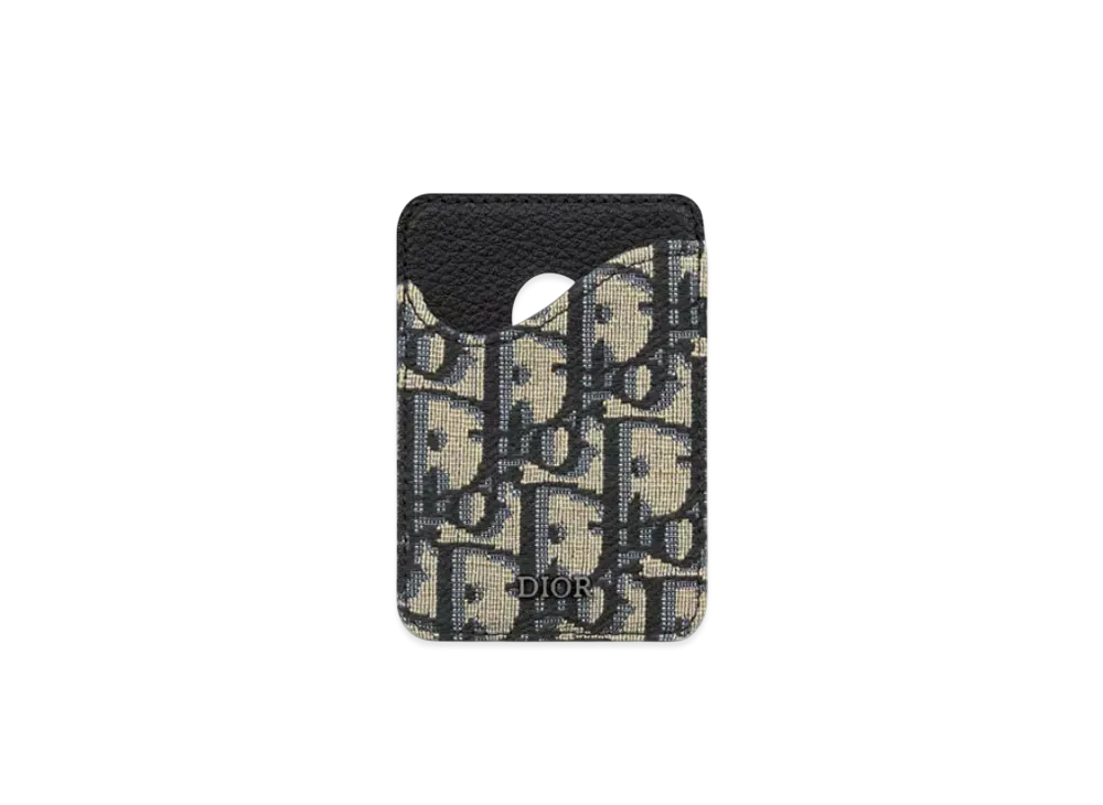Dior Saddle Magnetic Card Holder Grained Calfskin Marquetry and Dior Oblique Jacquard "Black"