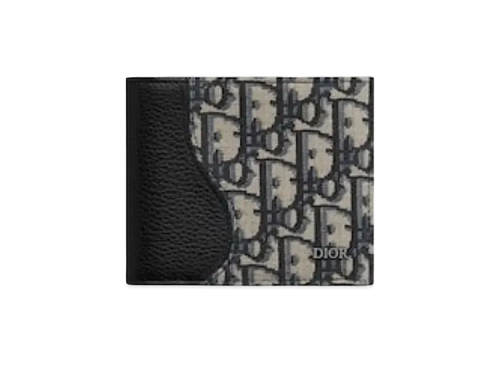 Dior Saddle Bi-Fold Card Holder Grained Calfskin Marquetry with Dior Oblique Jacquard "Beige/Black"