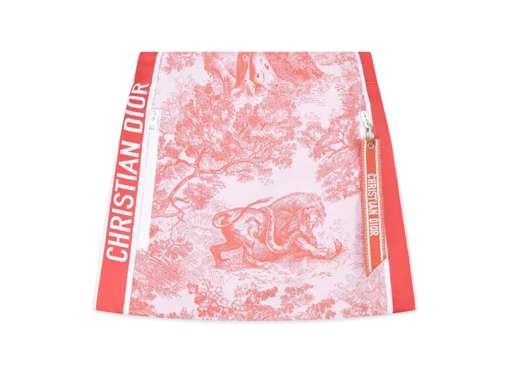 Dior Women's Dioriviera Skort Technical Taffeta Jacquard with Toile de Jouy Sauvage Motif "White/Coral"