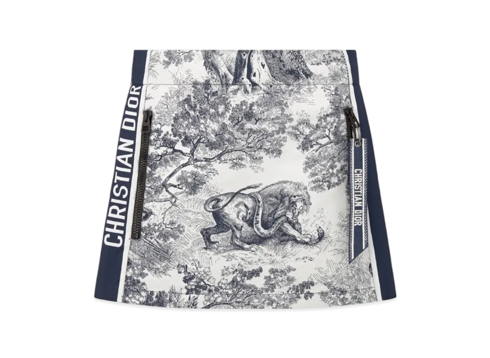 Dior Women's Dioriviera Skort Technical Taffeta Jacquard with Toile de Jouy Sauvage Motif "White/Blue"