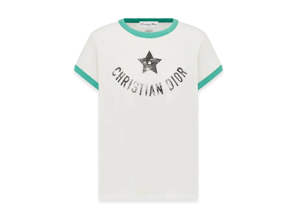 Dior Women's Dioriviera T-Shirt Cotton Jersey "Ecru/Aquamarina"