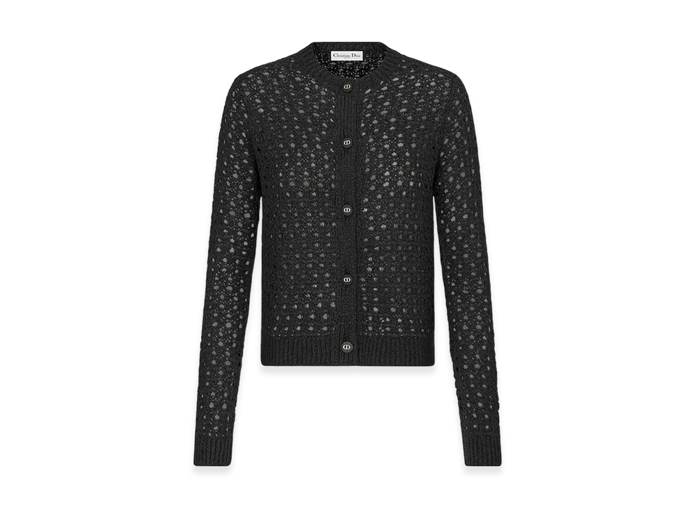 Dior Women's Cannage Cardigan Alpaca Cashmere Silk Openwork Knit "Black"