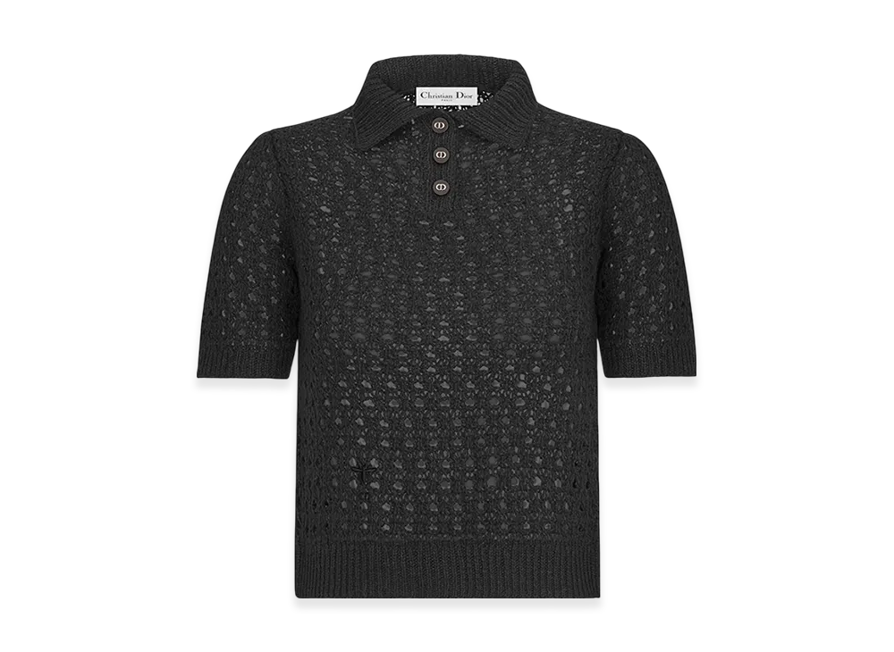 Dior Women's Macrocannage Polo Shirt Alpaca Cashmere Silk Openwork Knit "Black"