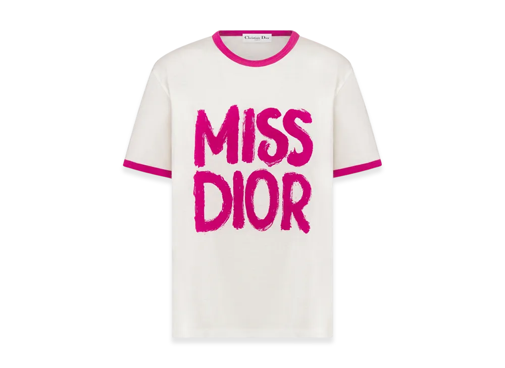 Dior Women's Cotton and Linen Jersey with Miss Dior Graffiti Motif T-Shirt "Fuchsia"