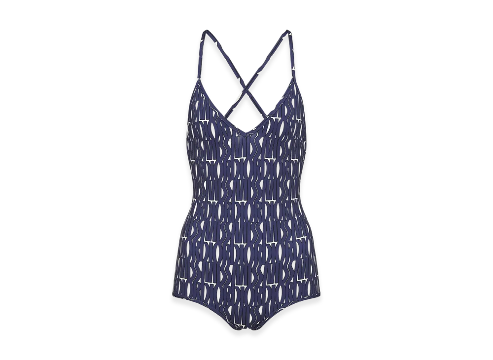 Dior Women's Technical Fabric with Miss Dior Allover Motif One Piece Swimsuit "White/Navy Blue"