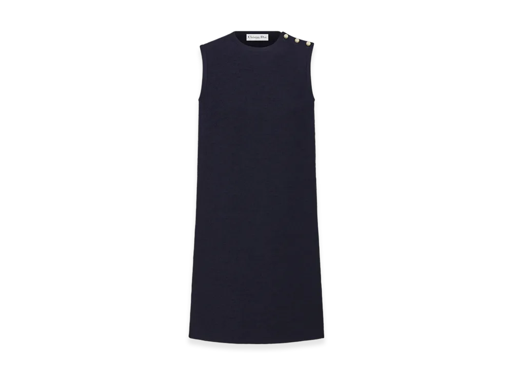 Dior Women's Virgin Wool and Cotton Boucle A Line Dress "Navy Blue"