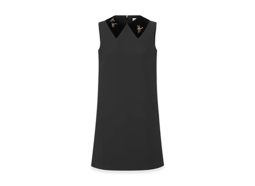 Dior Women's Wool and Silk with Dragonfly Embroidery A Line Embroidered Dress "Black"