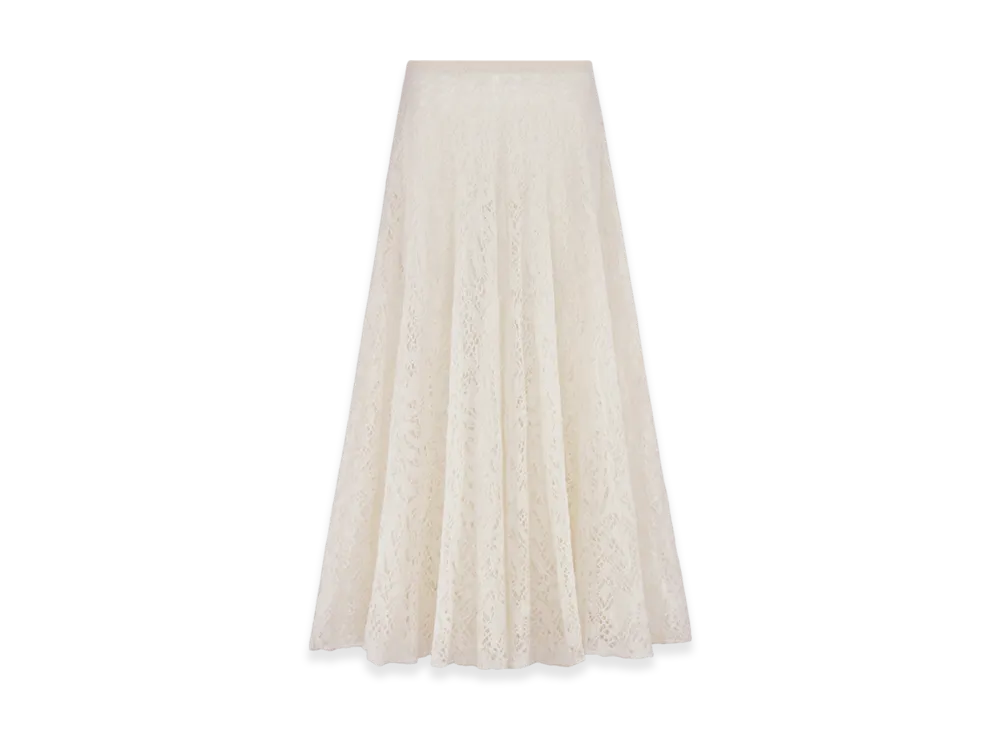 Dior Women's Mohair and Alpaca Blend Lace Flared Mid Length Skirt "Ecru"