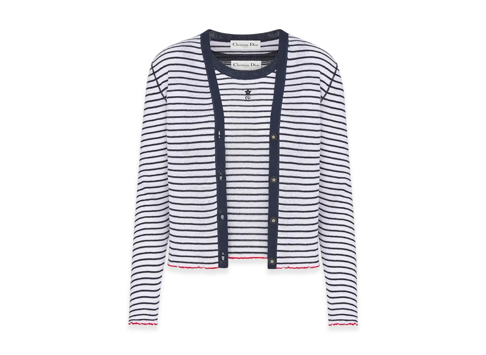 Dior Women's Linen Cashmere and Silk Ribbed Knit with Dior Mariniere Motif Dioriviera Twinset "White/Navy"