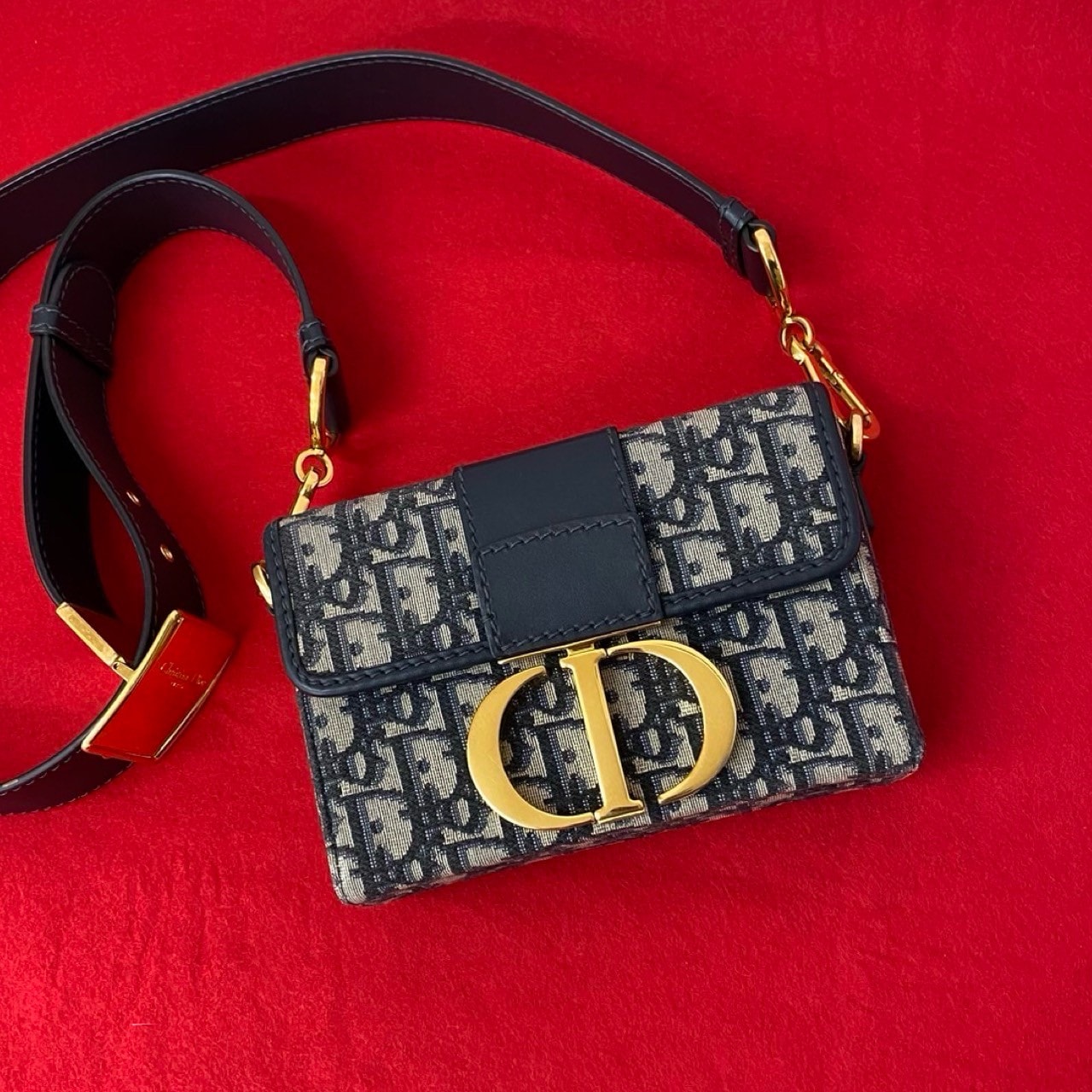 Christian Dior ディオール 30 モンテーニュ トロッター レザー キャンバス ショルダーバッグ ネイビー