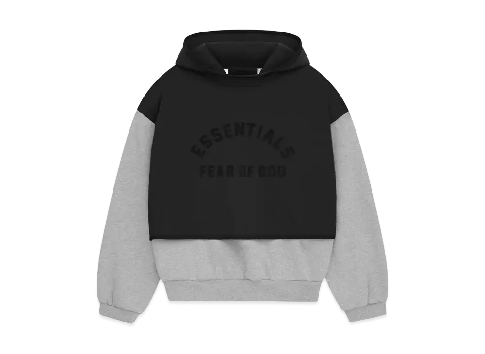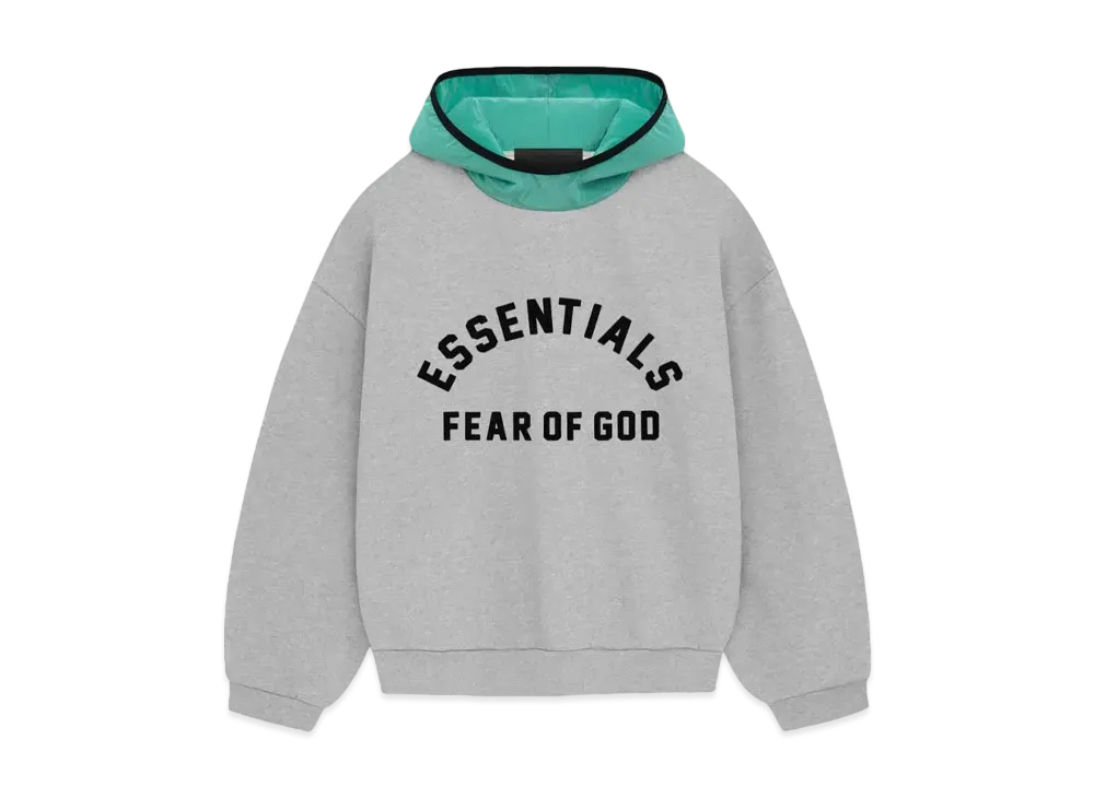 FEAR OF GOD ESSENTIALS Nylon Fleece Hooded Sweater "Light Heather Grey/Jet Black"