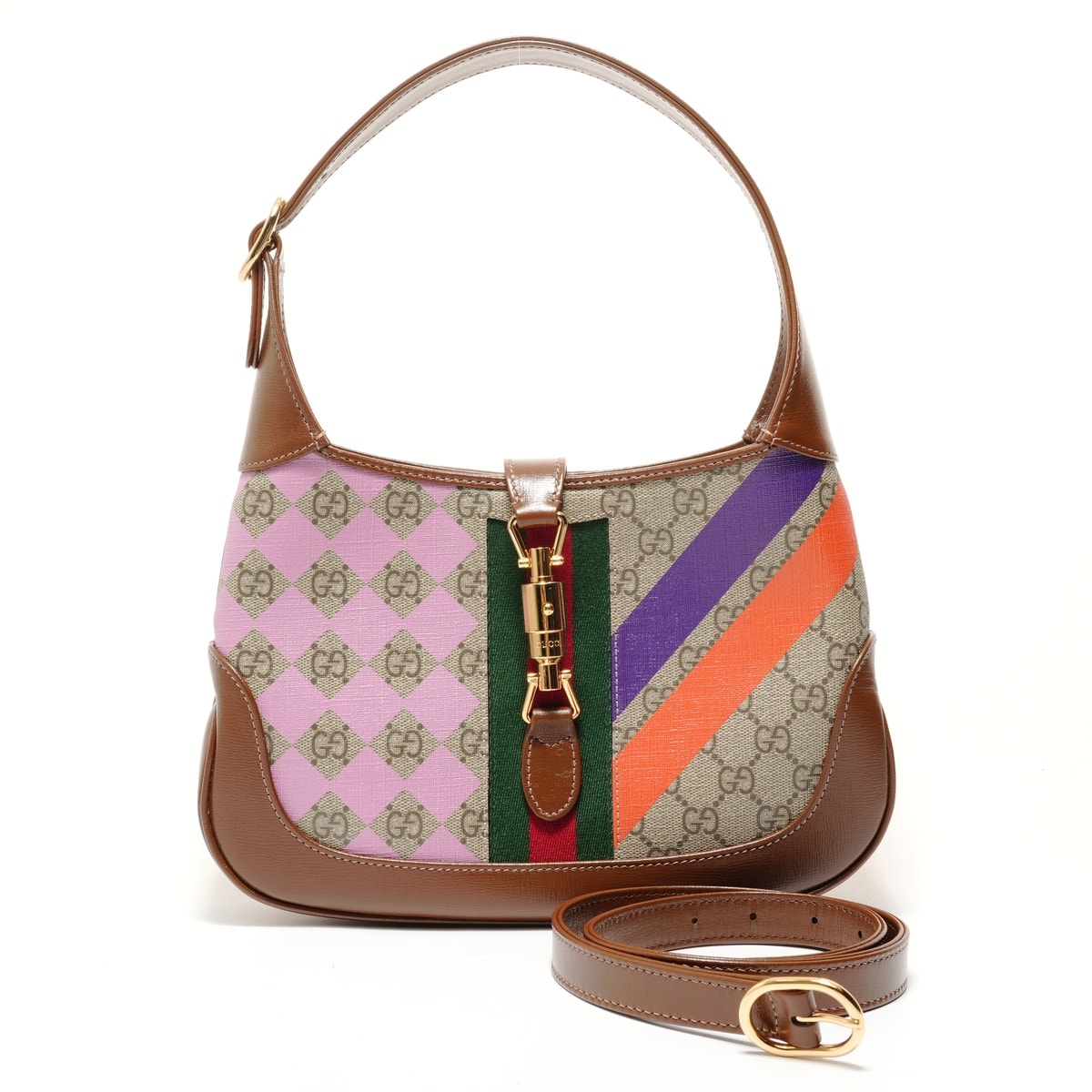 GUCCI 美品 グッチ ジャッキー 1961 GGスプリーム 2way ショルダーバッグ 636706 PVC レザー ベージュ ブラウン ゴールド金具 クロスボディ ワンショルダー セミショルダー シェリー ABランク 中古 鑑定済 グッチバッグ
