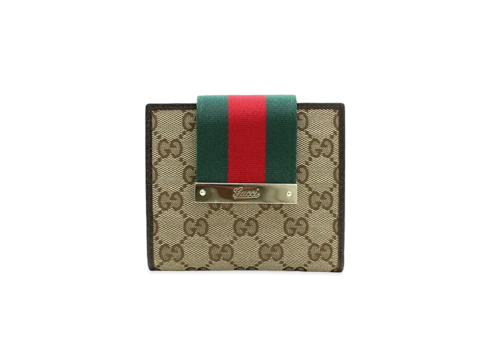 GUCCI Strap Compact Wallet Sherry Line GG Canvas "Beige"