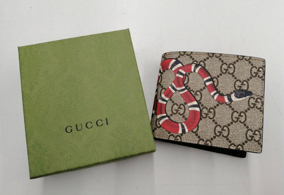 GUCCI Kingsnake Print GG Supreme Coin Wallet "Beige/Ebony"