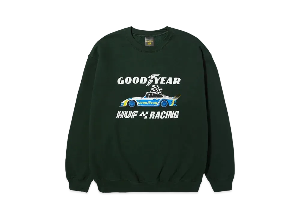HUF Goodyear Checkered Flag Crewneck "Hunter Green"
