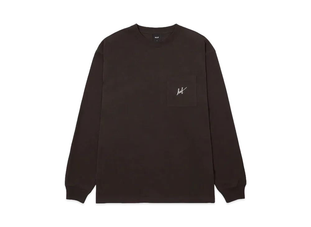 HUF Script Pocket Long Sleeve Tee "Espresso"
