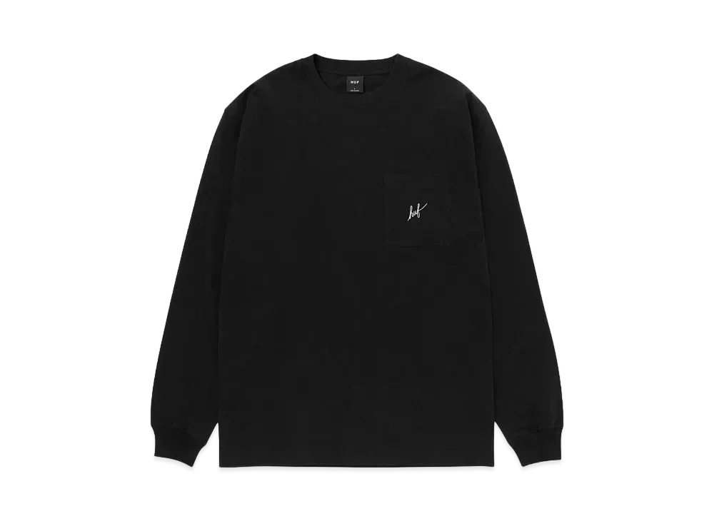 HUF Script Pocket Long Sleeve Tee "Black"