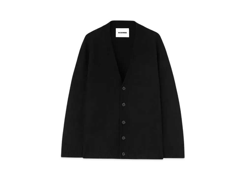 Jil Sander V-Neck Fine Merino Boiled Wool Cardigan "Black"