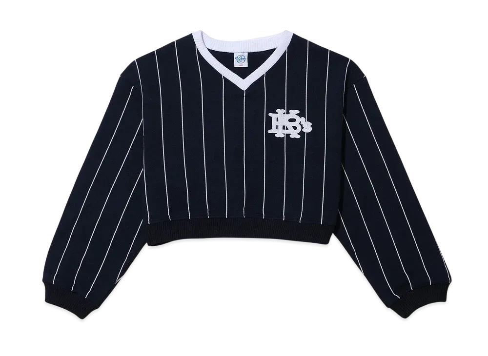 KEBOZ Stripe Vneck Cropped Sweat "Navy"
