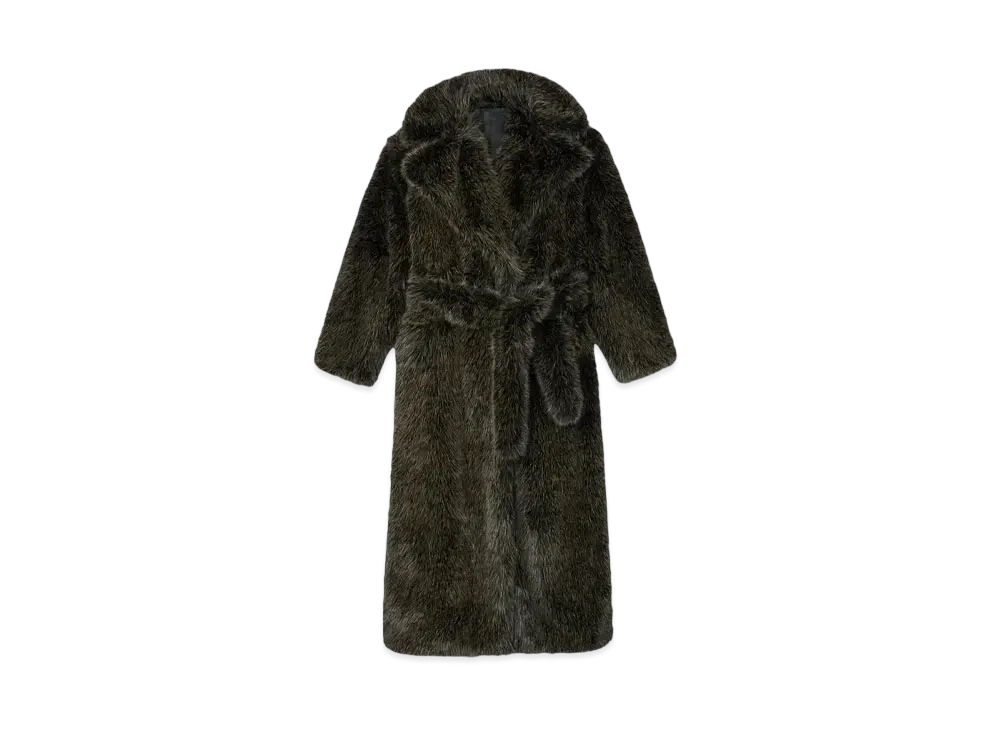 KENZO Long Fake Fur Belt Coat "Dark Brown"
