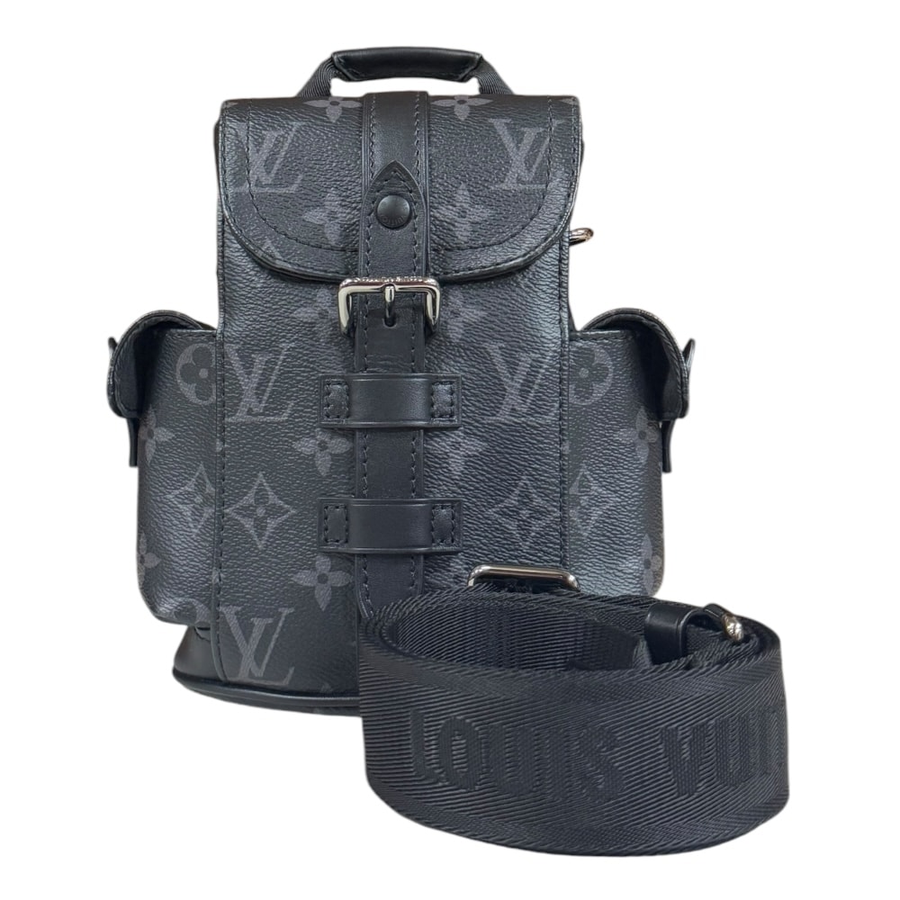 ルイヴィトン ナノ・クリストファー モノグラムエクリプス ショルダーバッグ モノグラムエクリプス M82769 ブラック メンズ LOUIS VUITTON 中古