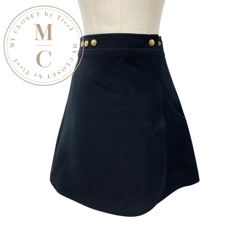ルイヴィトン LOUIS VUITTON ボトムス ウール ブラック ゴールド 未使用 ラップスカート ミニスカート