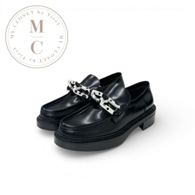 ルイヴィトン LOUIS VUITTON アカデミーライン ローファー 革靴 靴 シューズ レザー ブラック ホワイト 未使用 草間彌生 コラボ ドット チェーン
