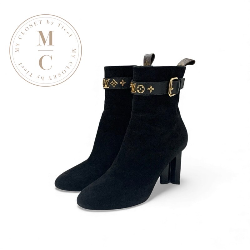 ルイヴィトン LOUIS VUITTON シルエットライン モノグラム ブーツ ショートブーツ 靴 シューズ スエード ブラック 黒 ゴールド アンクルブーツ LVロゴ ベルト