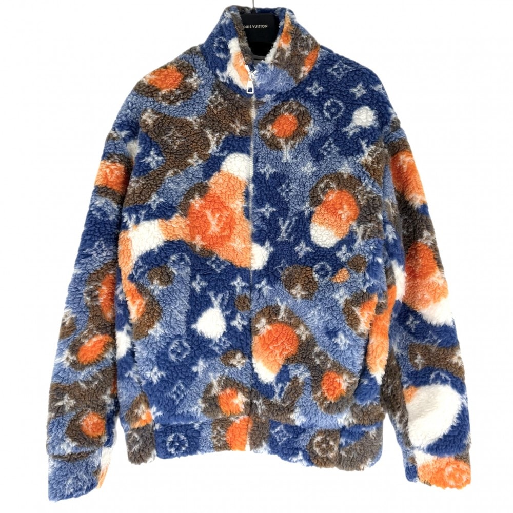 LOUIS VUITTON ルイヴィトン アウター モノグラム ジャガードカモフリースジャケット ボアジャケット ブルソン 服 S ブルー 青 オレンジ ゴールド金具 ポリエステル ウール メンズ 秋 冬【中古品】