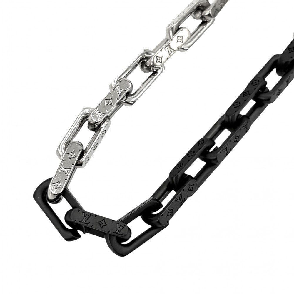 LOUIS VUITTON ルイヴィトン ネックレス モノグラムチェーン アクセサリー M00677 シルバー ブラック 黒 メンズ 約130.9g【中古品】