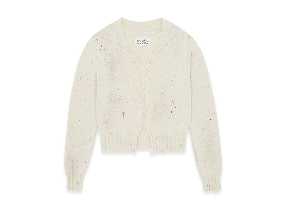MM6 Maison Margiela Women's Painted Knit Cardigan "Cream"