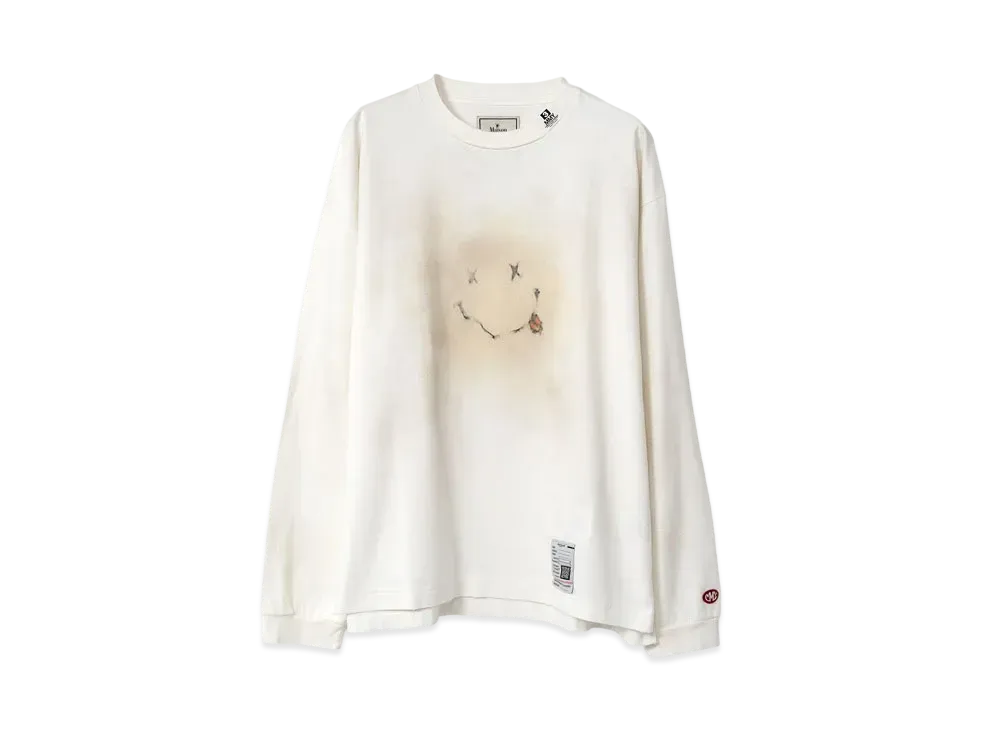 Maison MIHARA YASUHIRO Distressed Smily Face Printed Long Sleeve T-shirt "White"