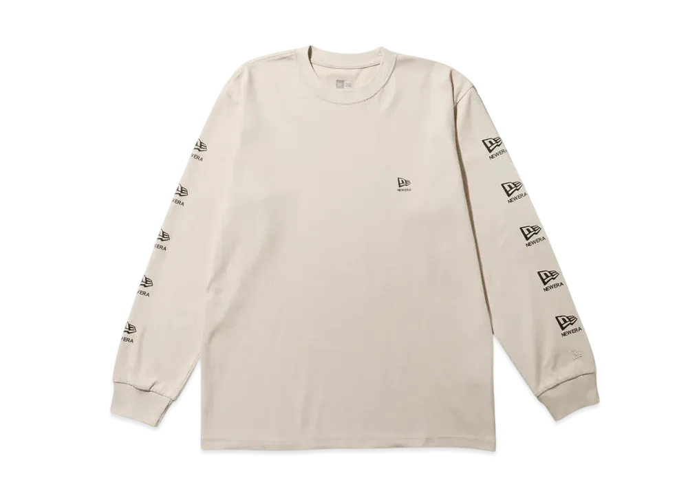 NEW ERA Long Sleeve Performance T-shirt Flag and Wordmark Regular Fit "Stone"