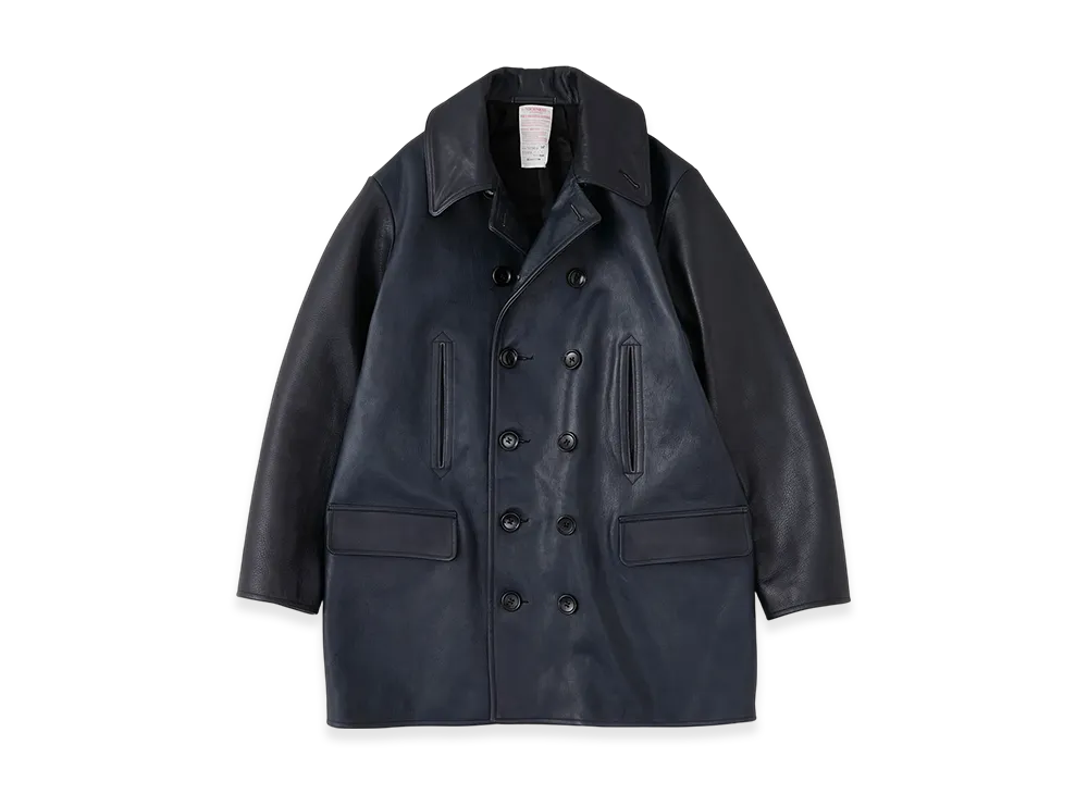 NICENESS L.Mclagan Brown Core Cow Leather 13-Button Pea Coat "Dark Navy"