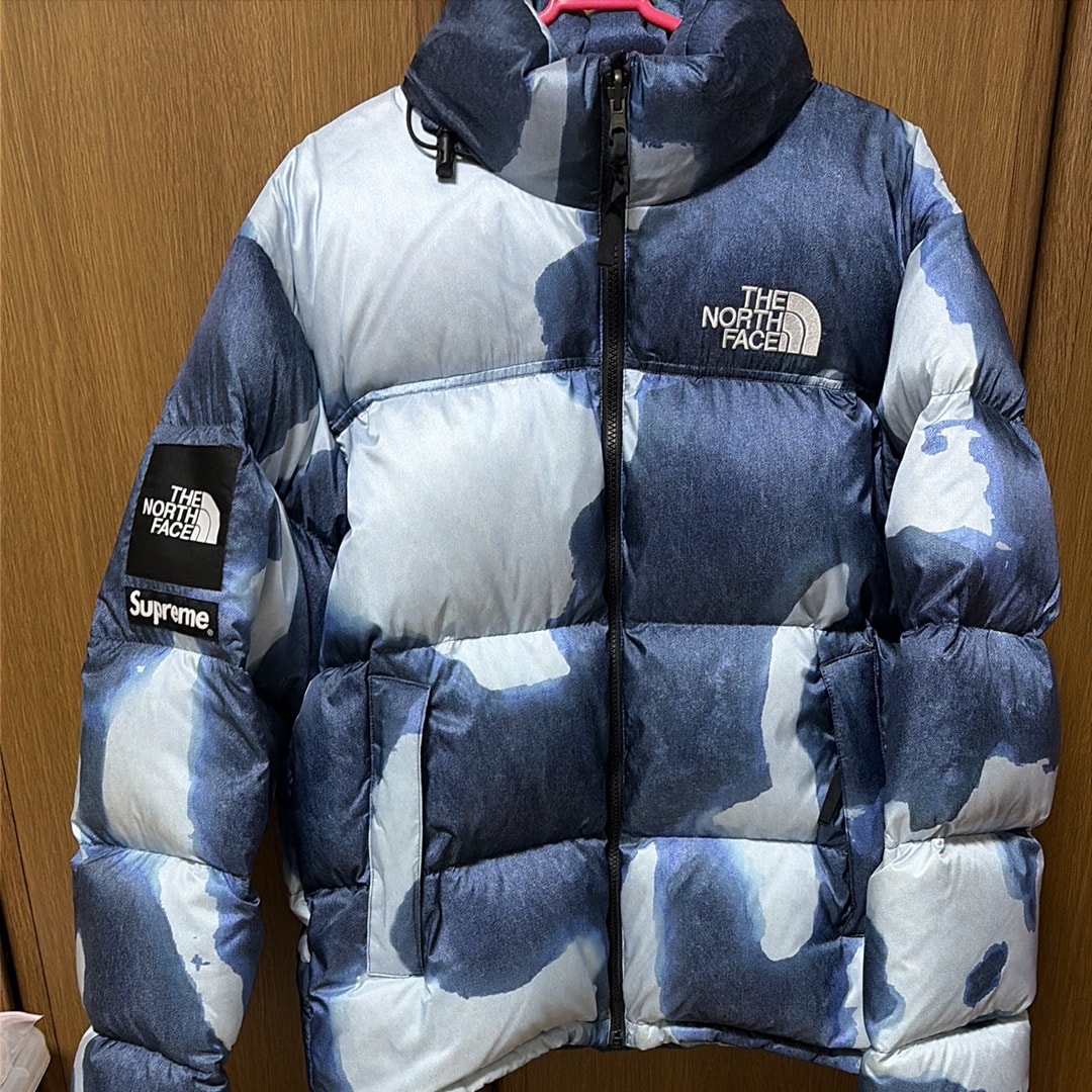 Supreme x The North Face Bleached Denim Print Nuptse Jacket "Indigo"